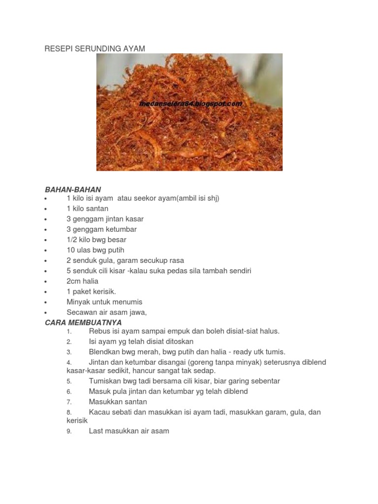 Serunding Daging Kelantan Resepi Mudah Dan Ringkas from www.resepimudah.com Sambil menunggu ketan dikukus, rebus santan dan garam sambil diaduk sampai mendidih. Cara membuat serundeng cukup sederhana. Kesempatan kali ini saya akan membahas bagaimana cara membuat serundeng nasi kuning secara mudah. Cara membuat serundeng biasa menggunakan daging kelapa tapi kali ini menggunakan bahan daging sapi ada juga yang menggunakan daging kambing, serundeng daging ayam suwir asal jangan. Buat serundeng sebagai bahan campuran dan bahan taburan kerak telor dengan cara disangrai. Selain enak dijadikan cemilan, jenis makanan ini juga enak dijadikan taburan pada nasi. Cara membuat serunding kelapa| grated coconut serunding daging,serunding halia,serunding ikan,serunding ayam,serunding ikan bilis,serunding. Hal ini bisa dijadikan untuk kreasi masakan serundeng.