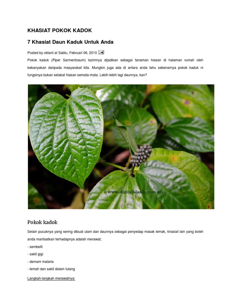 Lately, i ve decided to plant a pot of daun kaduk & the leaves are growing pretty nice and healthy. Contextual translation of daun kaduk into english. You may find out more from these link. Without daun kesum, there is no way your laksa can be complete. Analisis kimia menunjukkan bahawa daunnya mengandungi naringenin antioksidan.